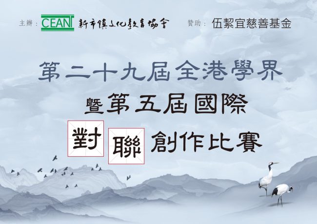 感謝各位對「第二十九屆全港學界對聯創作比賽」暨「第五屆國際對聯創作比賽 」的參與和支持,經過評判們的初選及面試…
